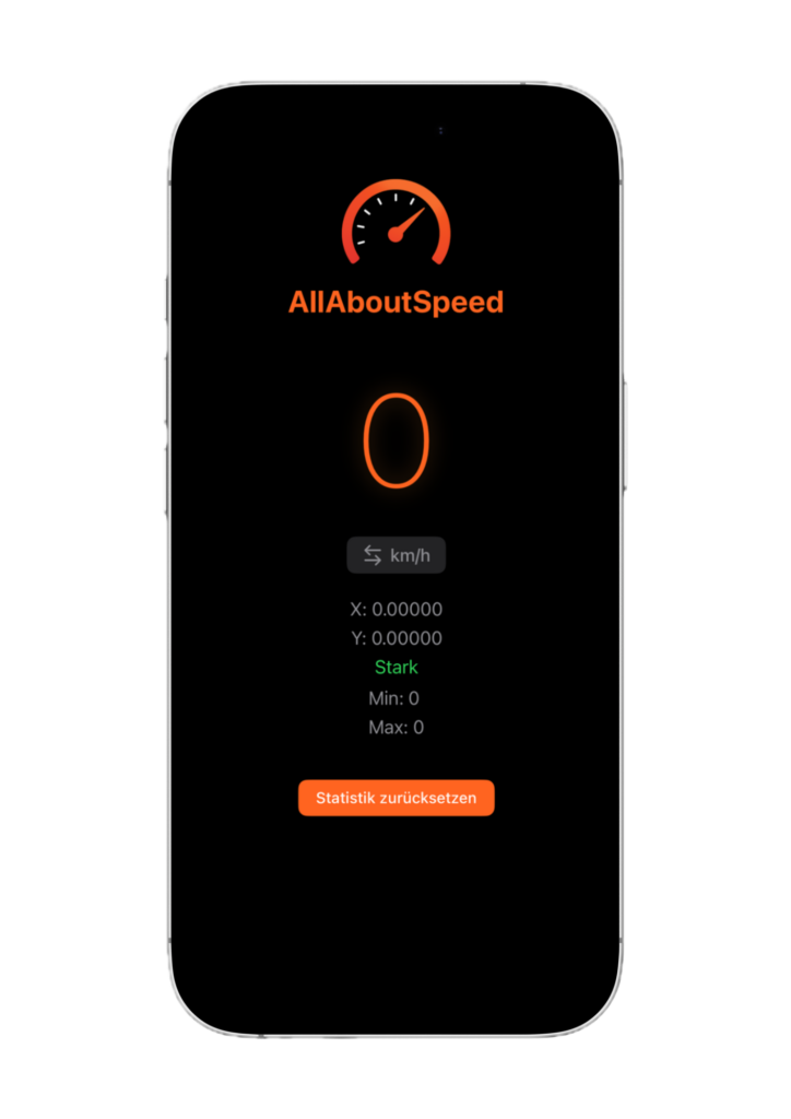 Minimalistischer GPS-Tacho mit Echtzeit-Messung, klarer Darstellung und maximaler Präzision – ohne Ablenkung.