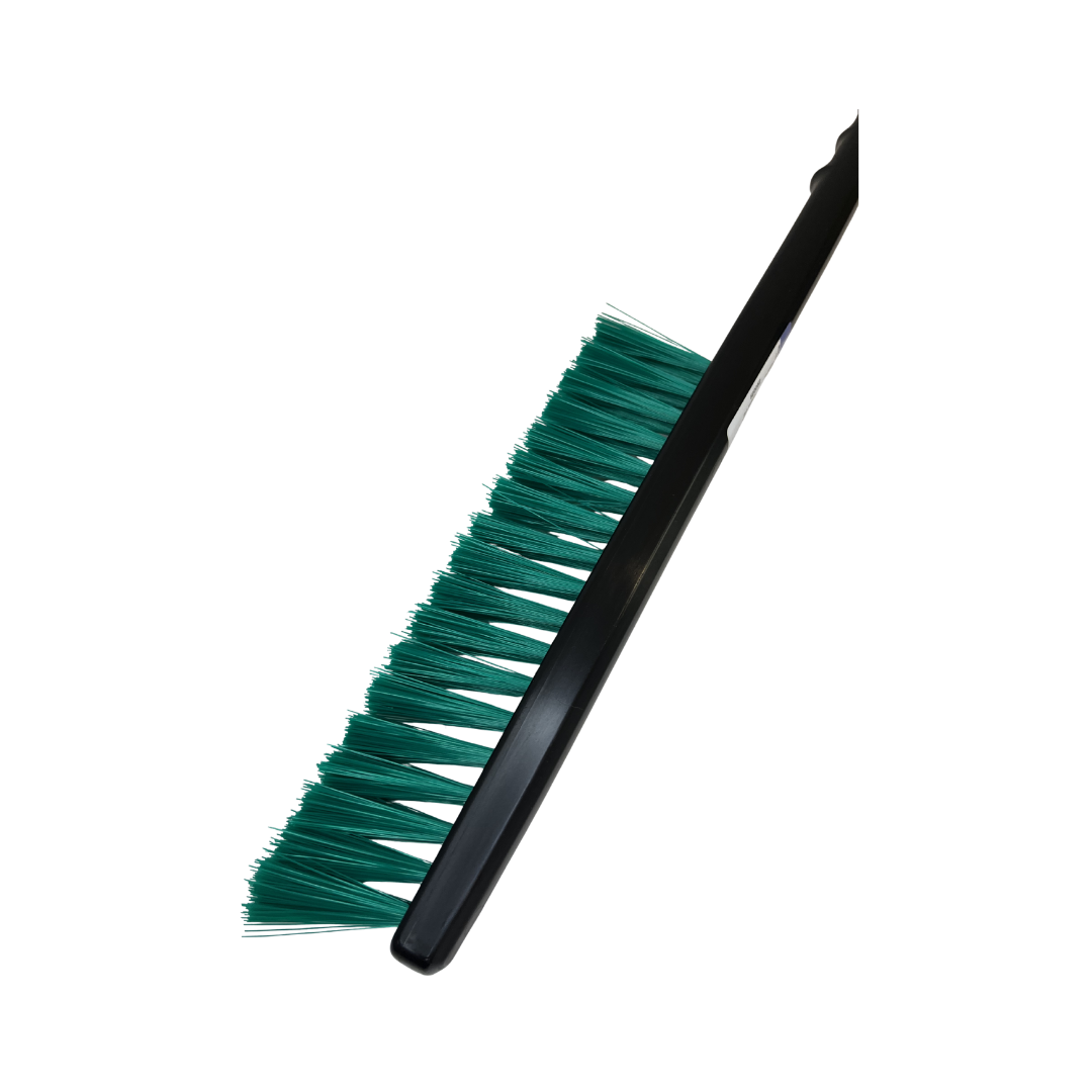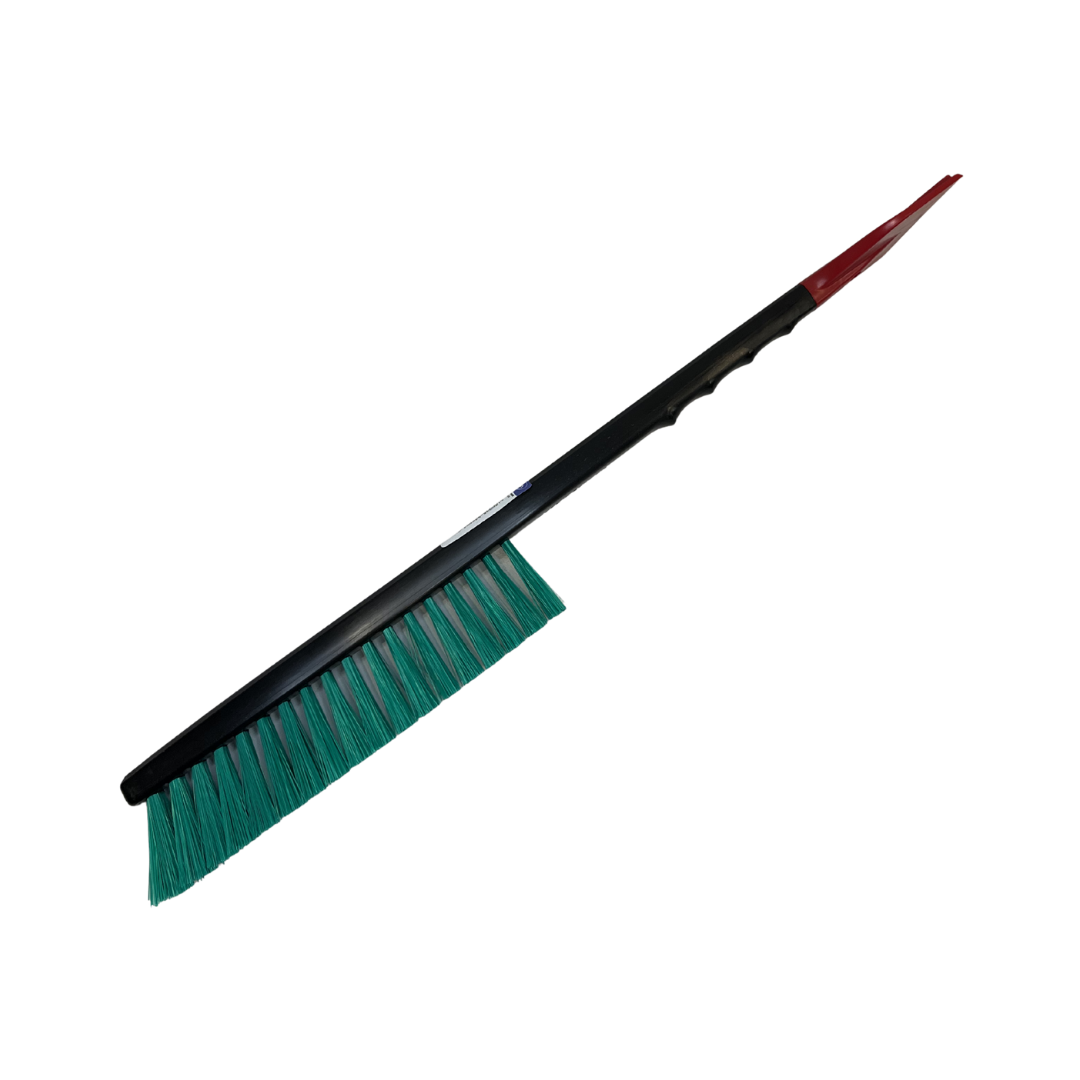Die stabile Kratzkante entfernt zuverlässig Eis von Fahrzeugscheiben, während der Besenaufsatz lockeren Schnee schonend von Glasflächen und Lack entfernt.